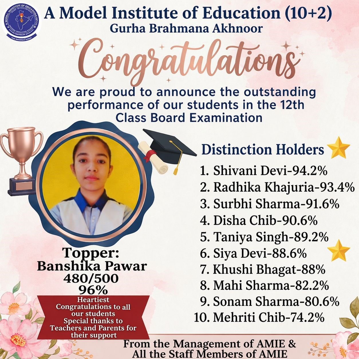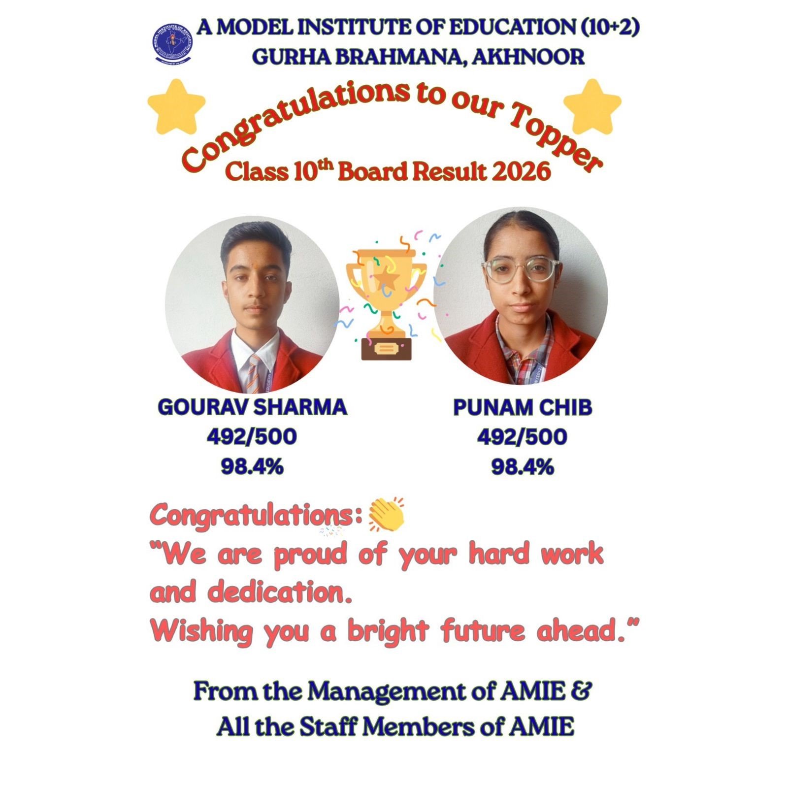 A Model Institute of Education is committed to nurturing young minds through quality education, strong values, and holistic development. We provide a safe, disciplined, and inspiring learning environment where students grow academically, socially, and morally.